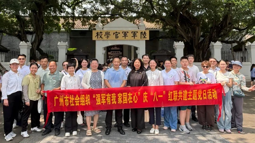 2025年7月29日上午,为深入学习贯彻习近平强军思想,赓续红色血脉、厚植家国情怀,在中国人民解放军建军98周年来临之际,广州市社会组织联合会联合党支部委员会(以下简称广州社联联合党支部)携手广州市民政发展研究中心党支部委员会,走进广州海军某大队、黄埔军校旧址纪念馆,共同开展“强军有我 家国在心”庆“八一”红联共建主题党日活动。来自市民研中心党支部及市社会组织党组织负责人和党员,共30余名,登临黄埔长洲岛,完成了一次深度的沉浸式国防教育和党性淬炼之旅。