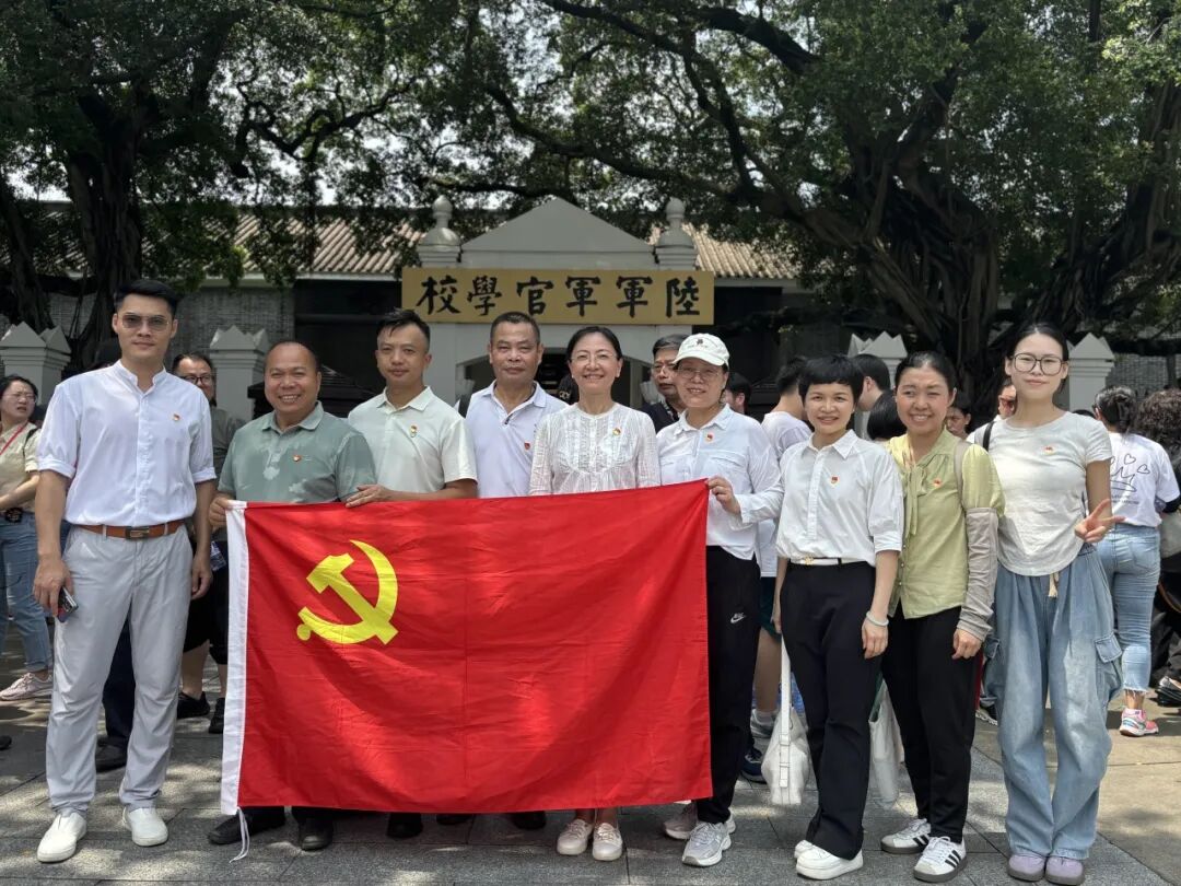 随后,党员队伍转赴广州黄埔军校旧址纪念馆,开启一堂深刻的爱国主义教育实境课。怀着深切的崇敬,党员们缓步穿过时光长廊:在校史陈列馆泛黄的文献与影像中追溯建校初心,在校本部旧址斑驳的砖墙与课桌间触摸历史脉动,在孙中山故居简朴的陈设前感悟革命情怀。300余件承载烽火记忆的珍贵文物、500多幅定格历史瞬间的泛黄照片、卷帙浩繁的详实档案,系统镌刻出军校在国共合作洪流中诞生、成长的光辉轨迹,以及黄埔师生在东征北伐的硝烟与抗日救亡的血火中铸就的巍巍丰碑。校本部广场上,一场跨越时空的忠诚对话在此展开:全体党员列队肃立,面向鲜红党旗,高举右拳,以信仰灌注的誓言撕裂长空——“我志愿加入中国共产党……”这穿云的铿锵,与长洲岛积淀的革命精魂同频共振,在历史与现实的交汇处,标注下新时代党员的精神坐标。