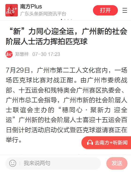 随着十五运会倒计时100天的到来,广州统一战线将更加紧密地围绕服务十五运会推出系列主题活动,以更加饱满的姿态迎接十五运会的到来,共同为服务十五运会和助力大湾区融合发展注入统战智慧和力量。