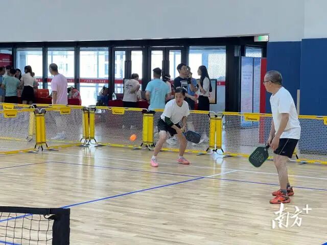 本次赛事以近年来风靡全球的新兴运动匹克球为载体,设置团体赛项目,包括男子双打、混合双打和无差别双打三个小项。匹克球作为一项融合网球、羽毛球和乒乓球特点的新兴运动,兼具趣味性与竞技性,吸引了不同年龄段的选手同台竞技,本次比赛共有来自穗港澳三地的18支代表队、近200名运动员报名参赛。
