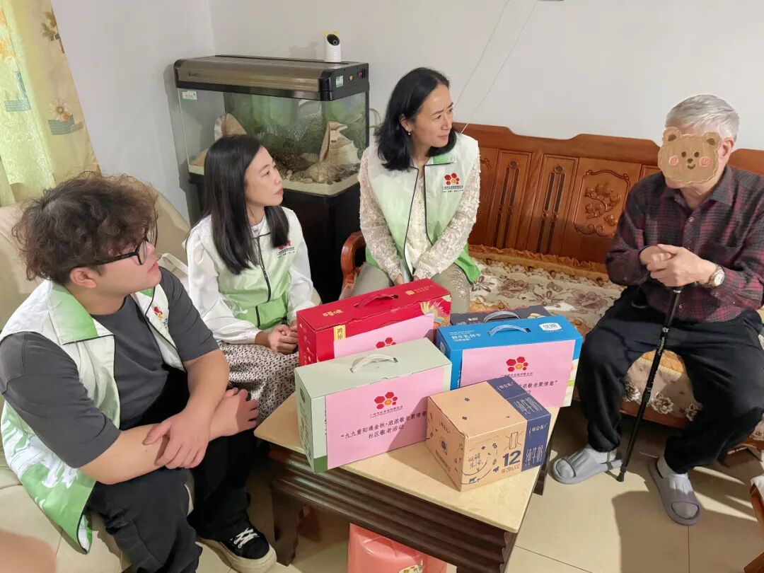 随后,慰问组来到了77岁的独居老人王叔家中。王叔患有高血压、糖尿病、肝硬化等多种慢性疾病,身体状况一般,子女因工作原因长期在外地生活,日常探望有限。慰问人员与王叔促膝交谈,细心询问他的健康状况、生活起居,叮嘱他注意保重身体,并致以暖心关怀。心态,并送上慰问品与节日问候。