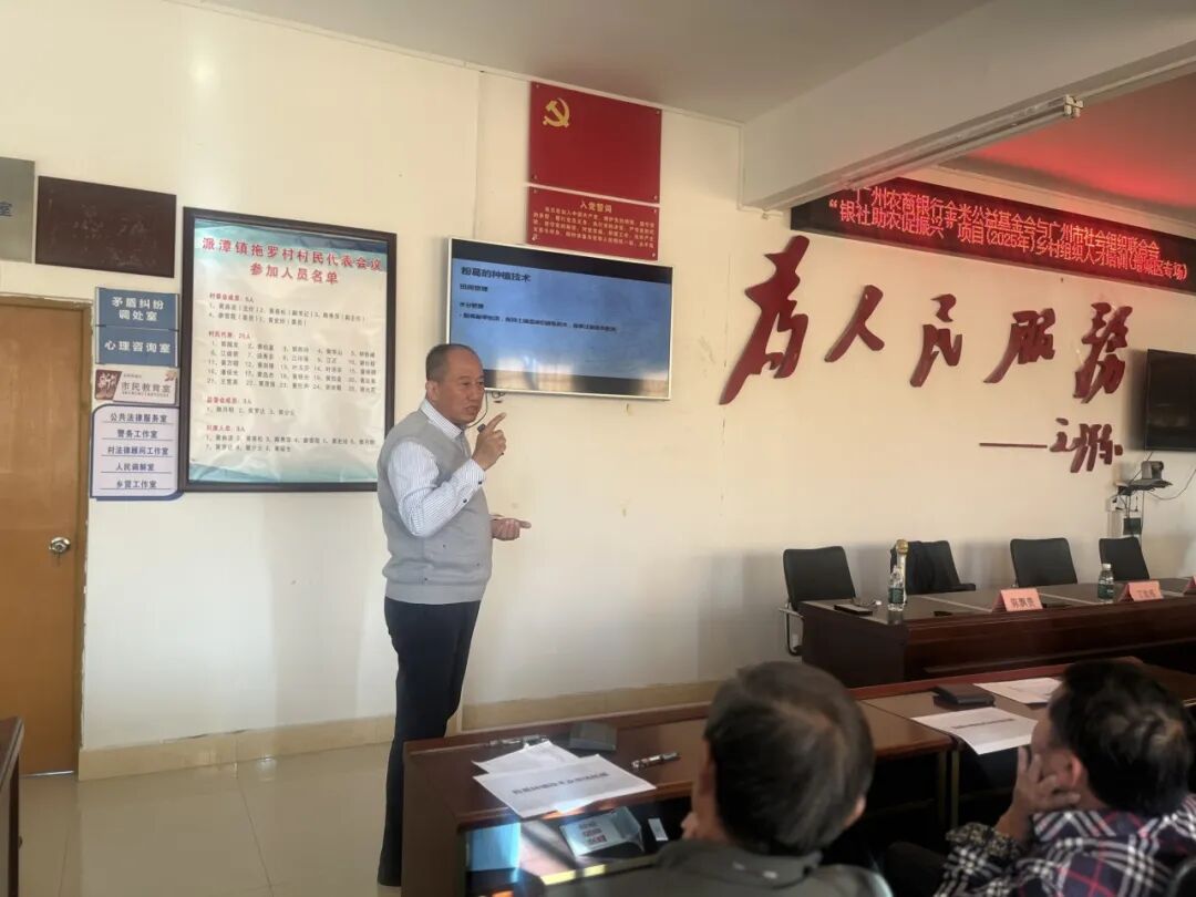 2025年11月26日,由广州农商银行金米公益基金会与广州市社会组织联合会(以下简称“广州社联”)联合开展的“银社助农促振兴”项目乡村组织人才培训(增城区)专场活动——粉葛种植技术与市场推广专题培训在拖罗村委会顺利举行。本次培训由广州市社会组织联合会与广州农商银行金米公益基金会主办,广州社联困境儿童关爱中心、广州市增城区荔乡客社会工作服务中心、派潭镇第二社工服务站和拖罗村党支部等单位共同协办。培训特别邀请专家丁浤伟进行授课,增城区乡村振兴代表、企业及个体工商户代表、本土村民农户代表等60余人参加培训活动。