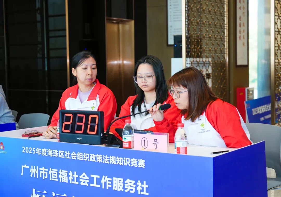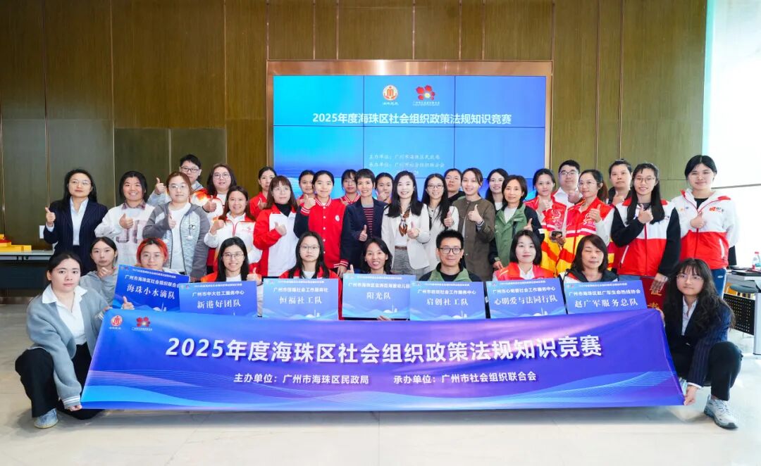 为深入贯彻落实国家关于加强社会组织规范化建设的要求,进一步提升海珠区社会组织的政策理论水平和依法从业能力,营造尊法、学法、守法、用法的良好氛围,2025年11月28日,由广州市海珠区民政局主办,广州市社会组织联合会(以下简称“广州社联”)承办的2025年度海珠区社会组织政策法规知识竞赛在海珠区同心园顺利举办。海珠区民政局四级调研员朱兆洪出席活动并讲话,广州社联常务副秘书长庄秀英主持活动,海珠区民政局相关领导及科室负责同志担任竞赛评委。本次竞赛吸引了来自海珠区社会组织代表组成的7支队伍同台竞技,展开了社会组织从业人员知识与能力的较量。