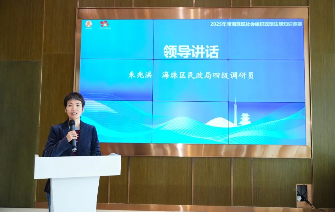 朱兆洪四级调研员做总结讲话。她向脱颖而出的参赛队伍表示诚挚的祝贺。她指出:社会组织健康有序发展离不开政策法规的指引与保障。海珠区民政局希望通过法规知识竞赛的开展,以赛促学、以学促干,激发全区社会组织从业人员学习政策法规的主动性和积极性,筑牢依法依规开展活动的思想根基,提升内部治理水平和专业服务能力,以更好地服务于海珠区经济社会发展大局。