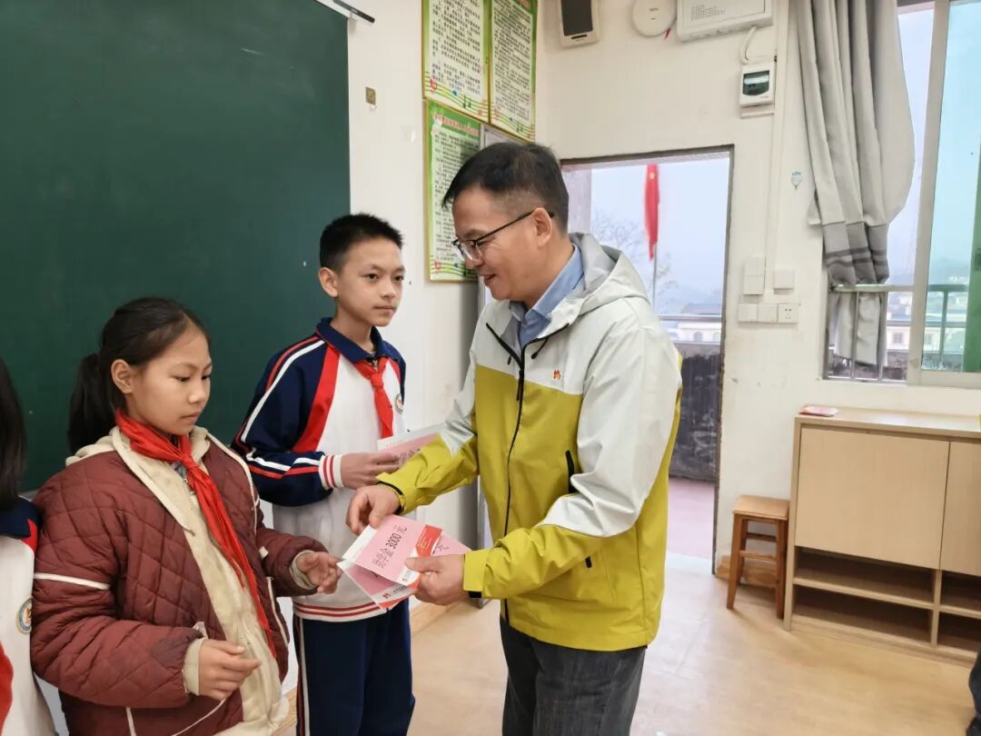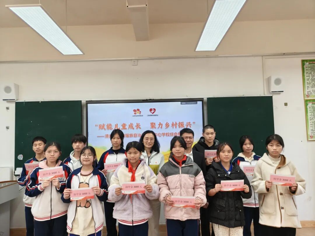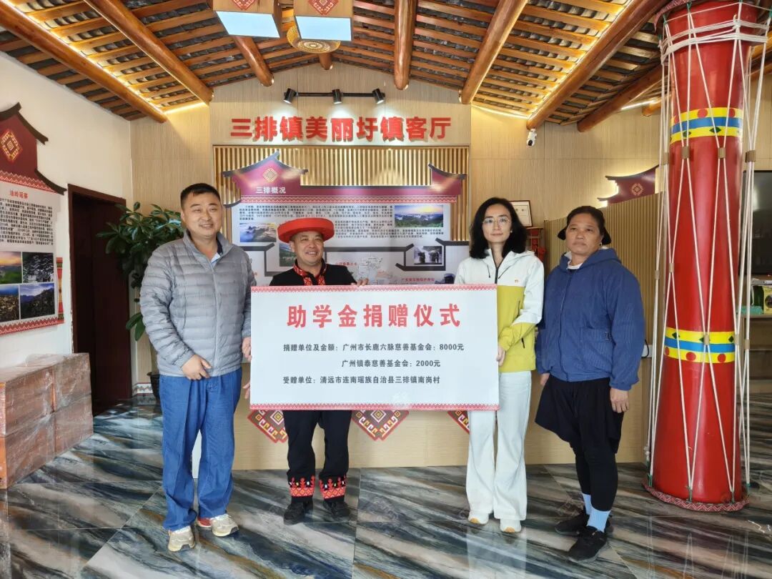 焦杨常务副会长代表广州镇泰慈善基金会向校方递交捐赠支票。自2022年,广州社联与广州镇泰慈善基金会共同开展的“聚力助学 童向未来”广州市社会组织对口支援清远市连南瑶族自治县三排镇教育帮扶项目,已累计资助117名学子,发放30万助学金。2025年11月,结合连南瑶族自治县三排镇困境学生的实际情况,为25名学子发放7.5万元助学金。