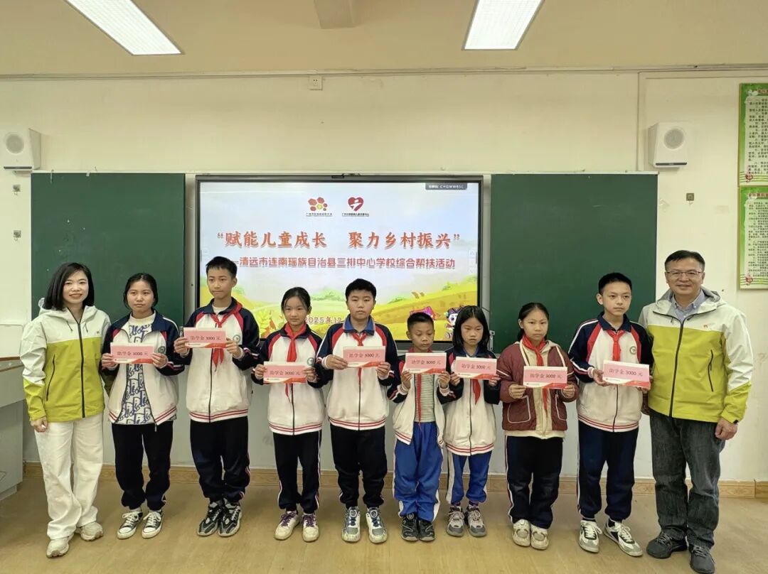 2022年至2025年期间,广州市社会组织联合会和广州社联困境儿童关爱中心发起“聚力助学 童向未来”广州市社会组织对口支援清远市连南瑶族自治县三排镇教育帮扶项目,截至2025年11月,在广州镇泰慈善基金会的支持下,发放助学金30万元,共资助117名学子;联合社会组织及爱心企业发起“每天一鸡蛋”广州市社会组织助力三排镇中心学校学龄儿童为健康体魄加餐行动,截至2025年10月,已向三排中心学校提供570箱17200斤鸡蛋;联合广州市中食安泓爱心公益基金会开展“养苗计划”乡村学龄儿童营养健康改善项目,为学校采购了蒸饭柜、洗碗机、消毒碗柜、就餐桌椅等硬件设施126件,价值11万元;链接社会组织资源为学校师生采购床被、凉席和相关学习用品等价值约6万元的物资;联合广州市海珠区民族团结进步协会资助学校羽毛球架等体育器材设备一批价值1万元,解决学校教学体育器材需求。2024年1月和10月,策划开展2期广州社会组织助力乡村儿童成长研学营,共邀请30余名优秀学子来到广州研学,促进两地学生交流;所建立的乡村儿童志愿服务导师团定期为学生送去美育、心理健康、健康营养等丰富多彩的特色课程。