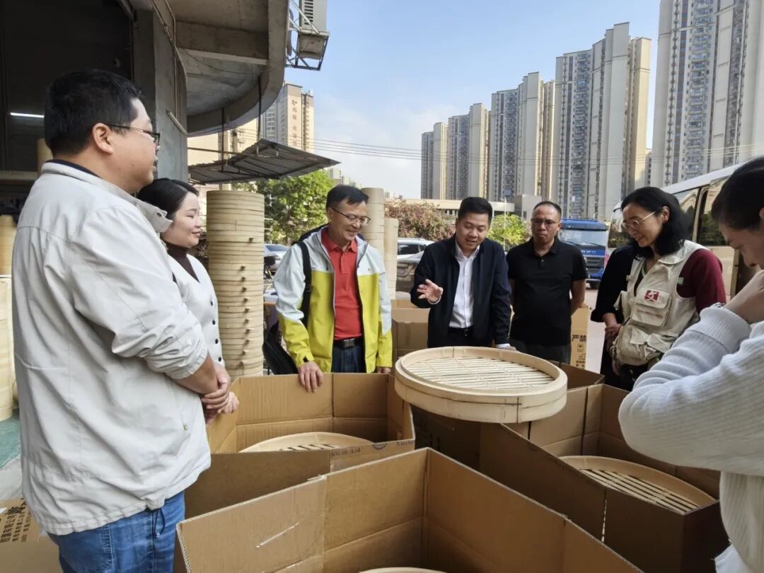 探访非遗创新实践。23日下午,考察团来到云浮罗定市,考察了由非遗手艺人沈美娟创办的罗定市竹之森农业科技有限公司。企业将传统竹编工艺与现代设计、市场消费相结合,实现了非遗的创造性转化与创新性发展,为活化利用乡村文化遗产提供了鲜活样本。考察团成员在惊叹传统手工艺编制蒸笼的技艺时,也关注其国内国际市场拓展。