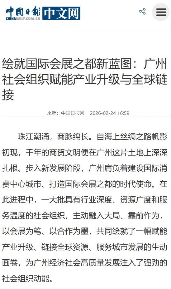 珠江潮涌,商脉绵长。自海上丝绸之路帆影初现,千年的商贸文明便在广州这片土地上深深扎根。步入新发展阶段,广州肩负着建设国际消费中心城市、打造国际会展之都的时代使命。在此进程中,一大批具有行业深度、资源广度和服务温度的社会组织,主动融入大局、靠前作为,以会展为笔、以合作为墨,共同绘就了一幅赋能产业升级、链接全球资源、服务城市发展的生动画卷,为广州经济社会高质量发展注入了强劲的社会组织动能。