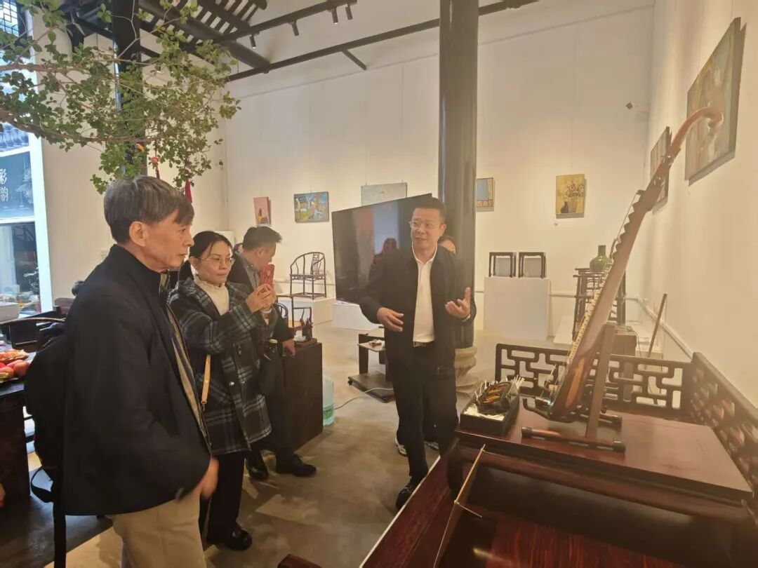 伴着和煦春风,大家信步于沙湾古镇的青石板路上,沉浸式感受镬耳屋的建筑之美。穿行于留耕堂,轻抚蚝壳墙的斑驳纹理,细赏岭南漆艺作品的精妙匠心,雕梁画栋间尽显传统工艺的深厚积淀与岭南美学的隽永韵味。会员们时而驻足凝望,时而交流心得,在移步换景中碰撞出传统文化传承与产业融合发展的思想火花,也在不经意间发现跨界合作的新契机。